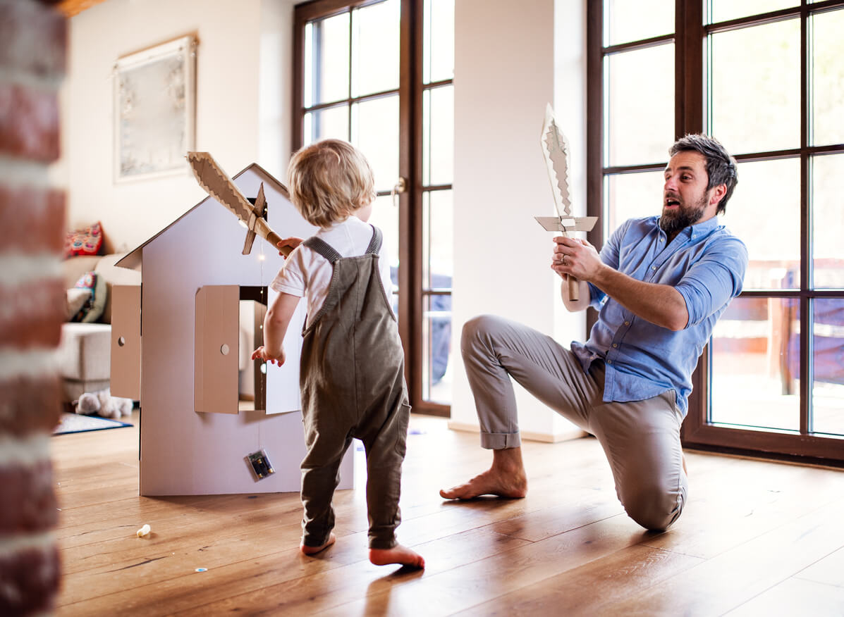 - Laissez-les utiliser des jouets qui ne font pas mal, comme les suivants : coussins, épées en carton ou boucliers en carton. Une autre chose que nous pouvons prendre en compte est qu’ils jouent sur un tapis.